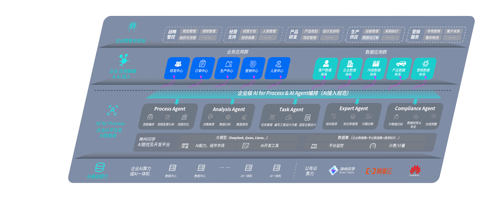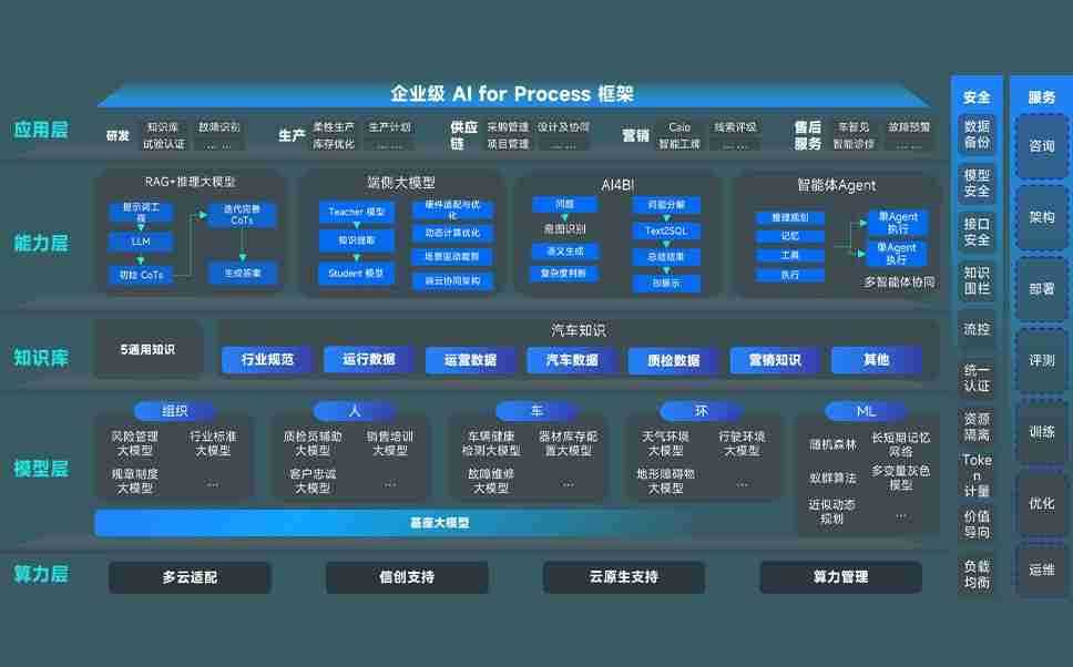 新盛娱乐问学智车解决方案是一套基于AI技术的汽车行业智能化系统,,覆盖从底层算力到顶层AI应用的全栈方案。。方案由算力层、、模型层和应用层组成:算力层,,,方案支持多种一体机配置,,具备云端灵活部署、、多云适配以及动态优化计算资源的能力;模型层,,新盛娱乐问学平台版提供了企业级AI应用一站式构建与管理平台,,,支持基于后训练强化技术的汽车企业专属模型的训练、、、评测和运营;应用层,,新盛娱乐问学DeepSeek版提供包括超级员工、、智能招采、、、智能营销、、、、智能客服、、AI for BI等一系列解决方案,,,可助力汽车行业实现数字化转型,,,让管理更智能、、响应更敏捷。。。。